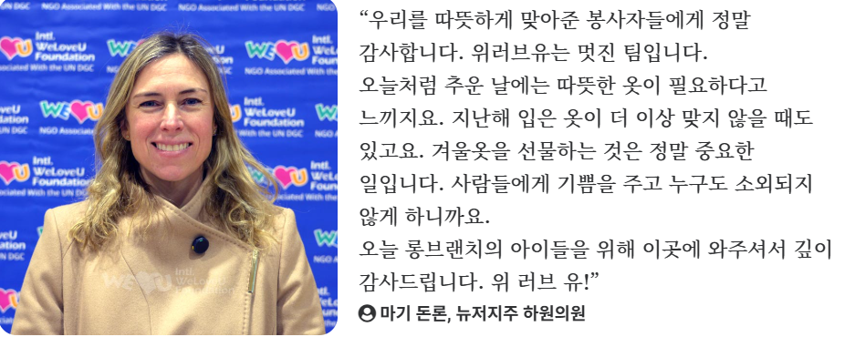 국제위러브유 장길자 회장님의 위로의 겨울옷 지원 사업은 앞으로도 계속됩니다.