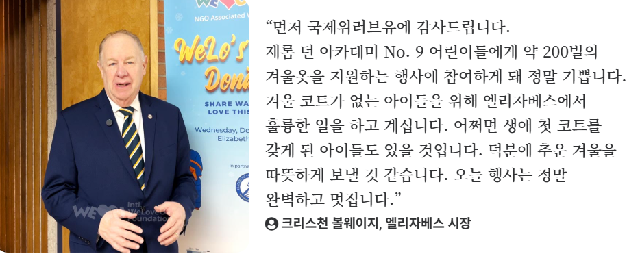 매해 겨울이면 ‘위로(WeLo)의 겨울옷 지원 사업’을 벌이고 있습니다.