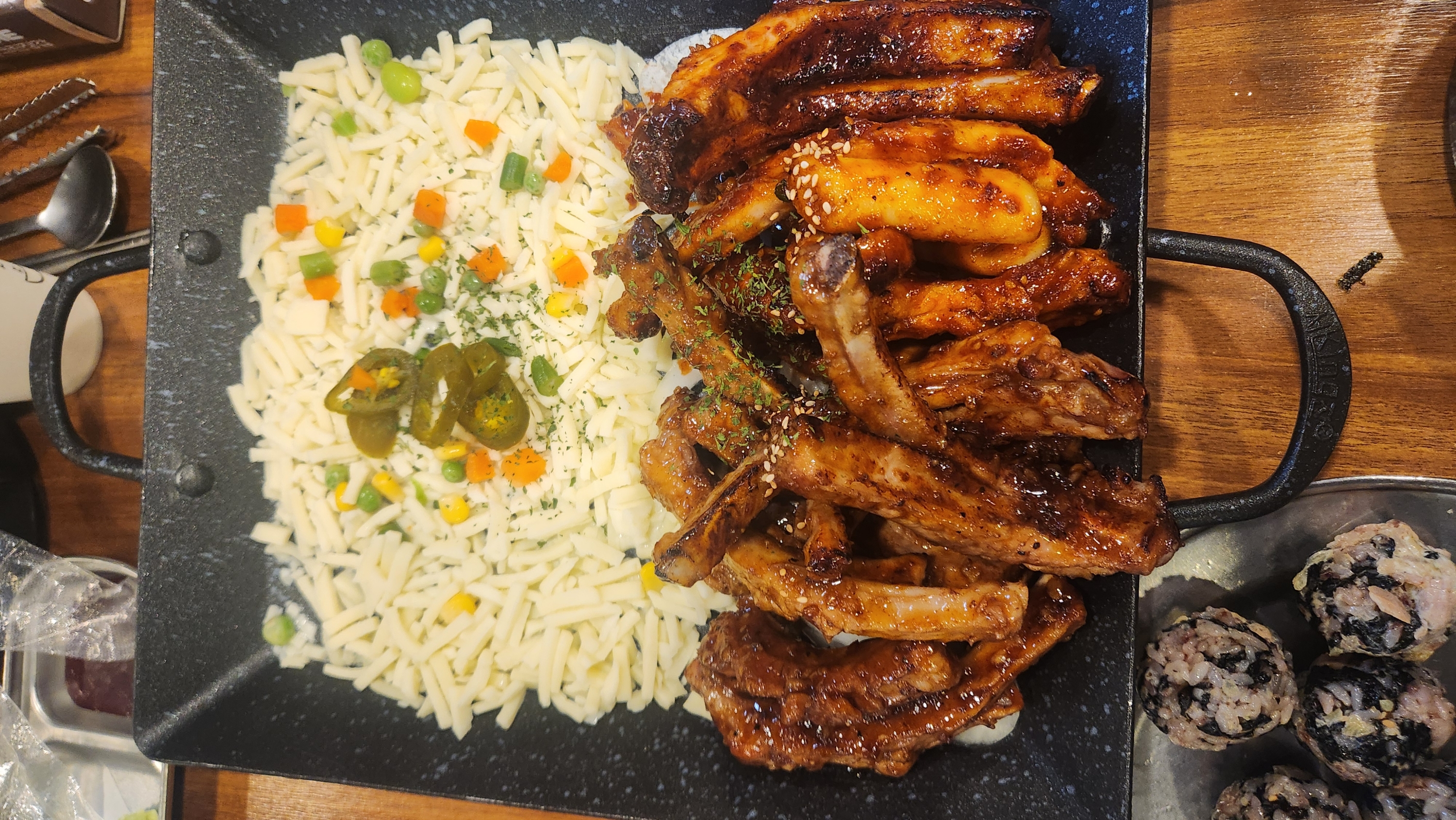 무제한 메뉴 중 치즈+숯불쪽갈비를 먹었답니다.